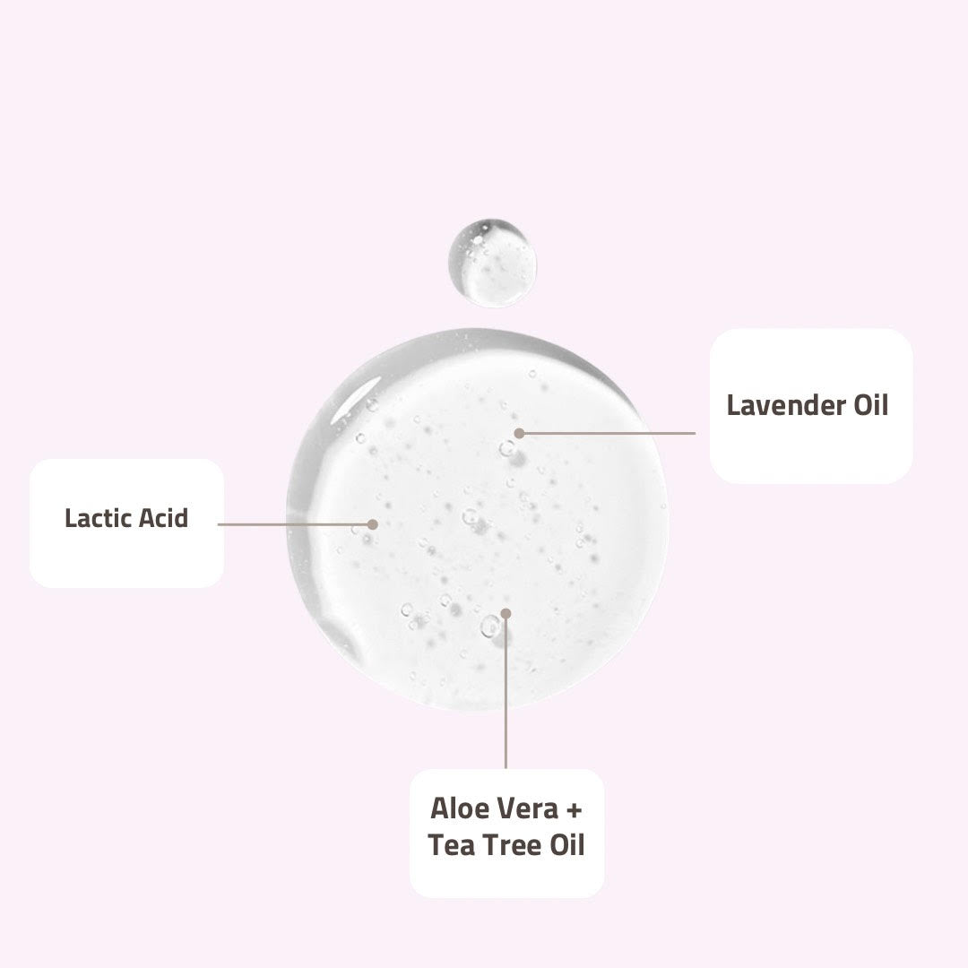 مكوّنات لطيفة مثل: لاكتيك، ألوفيرا، ولافندر.
